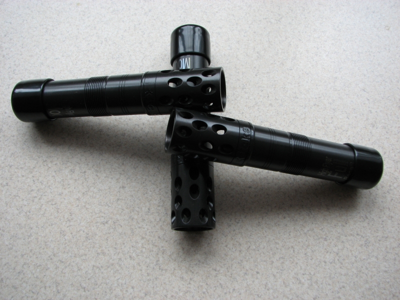 Компания Kick's специализируется на производстве чоков, которые значительно улучшают характеристики Вашего ружья. Эти чоки предназначены, как для охоты, так и для стендовой стрельбы. При применении этих чоков равномерность и плотность дробовой осыпи увеличивается на 15-20% , а также уменьшается подброс ствола и отдача в целом. Благодаря отверстиям расположенным на 135 градусов и их острым краям происходит захват контейнера и отделение его от дробового снопа, что не даёт контейнеру разбивать и уводить дробовой сноп. Чоки выступают за дульный срез, удобно взаимозаменяются без применения ключа.